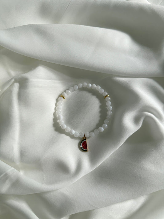 Bracelet Tasbih 33 perles Blanc nacrée + Charms Pastèque